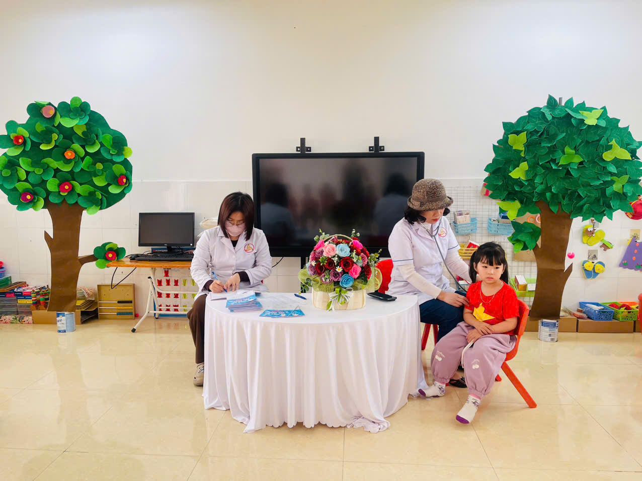 TRƯỜNG MẦM NON YÊN ĐỨC PHỐI HỢP TRẠM Y TẾ PHƯỜNG YÊN ĐỨC KHÁM SỨC KHOẺ LẦN 2 NĂM HỌC 2024 - 2025 CHO TRẺ